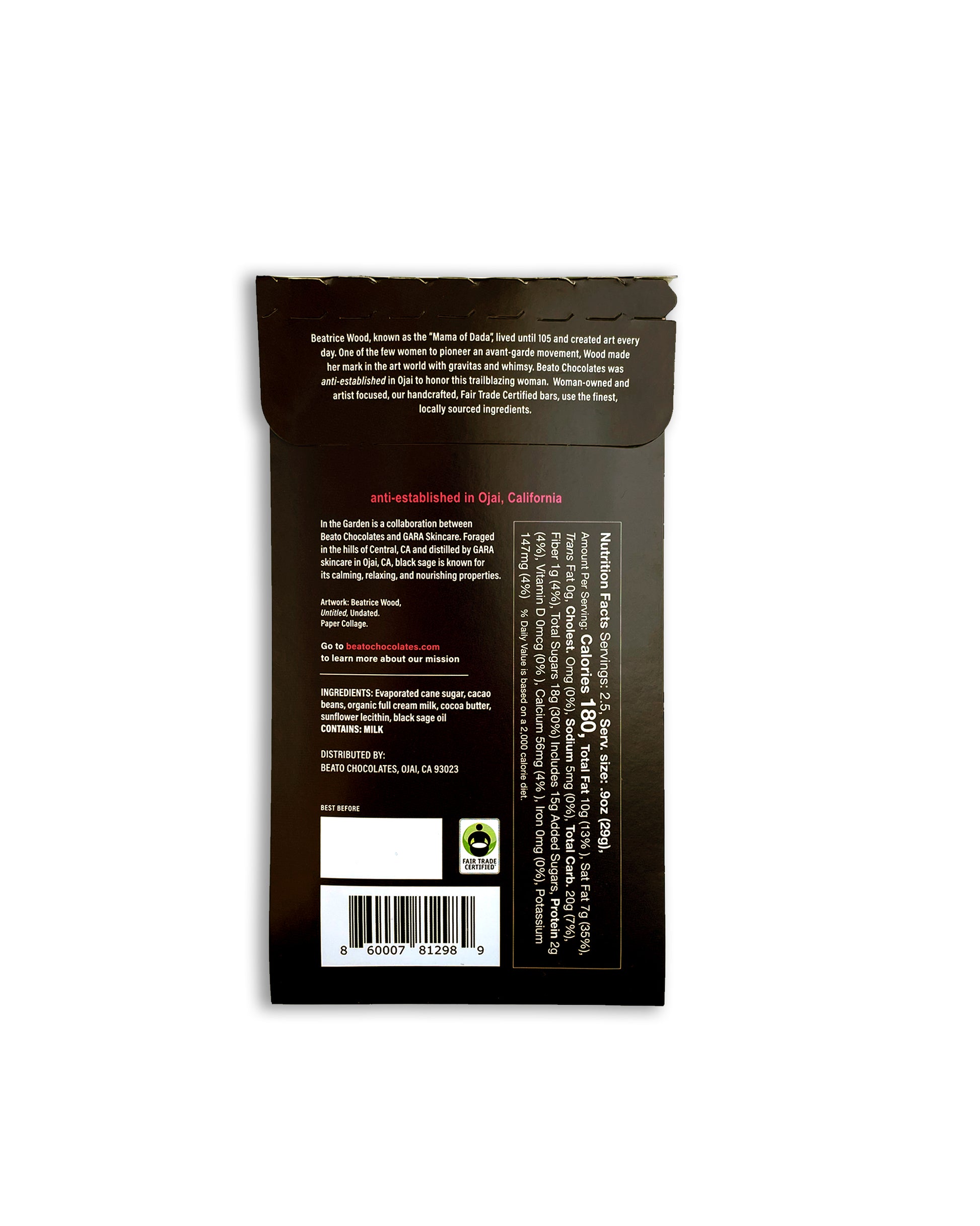Having spent years harvesting and distilling, Paul had the brilliant idea to merge his two passions—distilling and chocolate—into a remarkable medicinal chocolate bar. By harnessing the power of our local black sage (Salvia mellifera), we collaborated with our friends Heather and Lisa at Beato Chocolates to create this extraordinary treat.