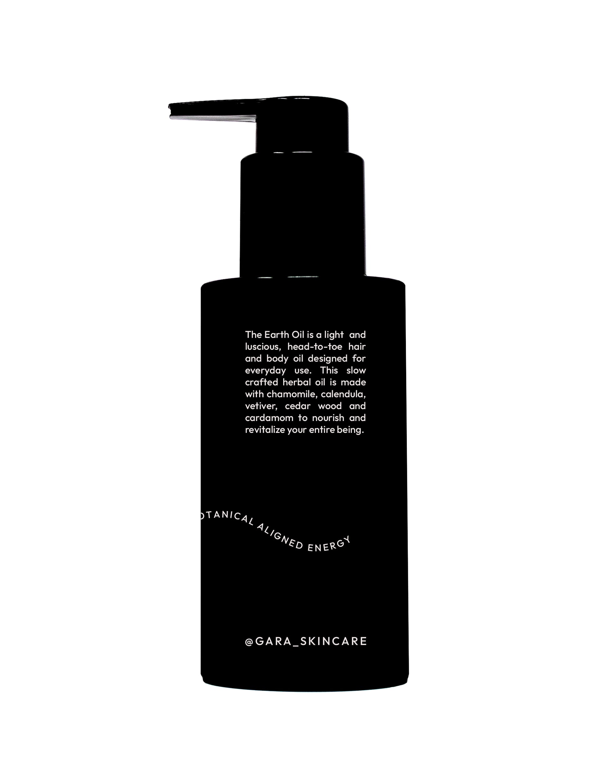 The Earth Oil is a light and luscious, head-to-toe body moisturizer designed for everyday use. This aromatic herbal oil is made with chamomile, calendula, vetiver and cardamom to nourish and revitalize your entire being. Its sweet, herbaceous aroma feels like the warm embrace of Mother Earth. Each drop is part of a cosmic story, the philosophy of elements and temperaments expressed as divine matter.
