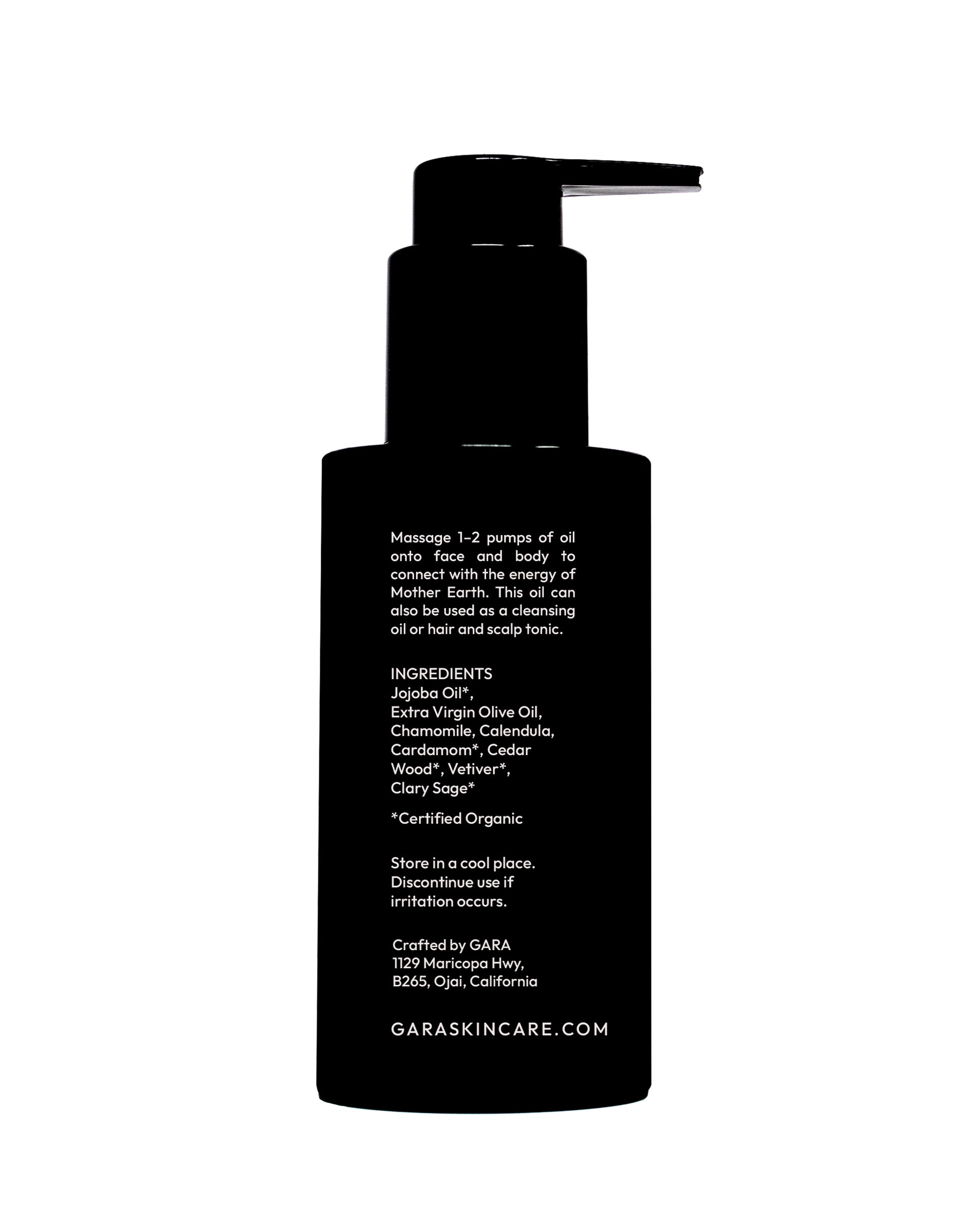 Warm 1-2 pumps in the palm of your hand to release the scent and energy of Mother Earth. Apply to face and body after cleansing. Use the Earth Oil daily to connect with nature and forge a deeper awareness of your inner and outer landscapes.